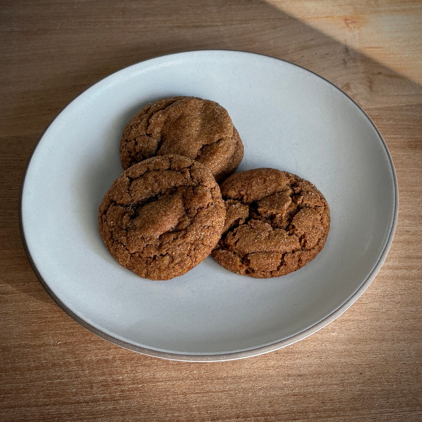 However the sourdough starter looked a little lethargic this morning so I re-fed it and pivoted, choosing to bake something different in the meantime using the sourdough discard. I picked Aran’s Sourdough Molasses Cookies with Chocolate Chunks. It was a very good pivot.